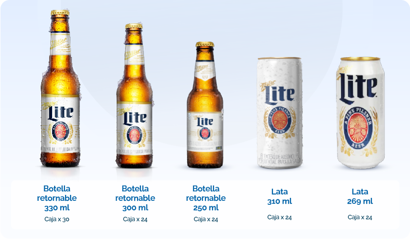 Miller Lite es una cerveza con cuerpo y mucho sabor, pero menos pesada. Durante su proceso de elaboración de 21 días, se le añaden distintas clases de lúpulos que le dan más sabor, aroma y un cuerpo balanceado.